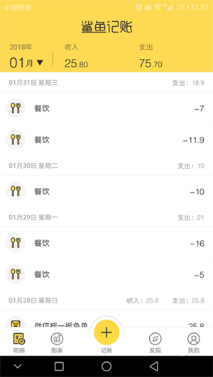 7、然后点击页面左下角明细和图标,可以显示你花费和收入的明细记账,还有图标显示,一目了然