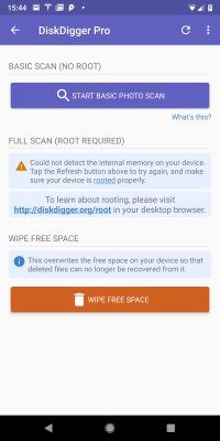 使用 DiskDigger Pro 非常简单。启动应用程序后,它将显示两个选项:“基本扫描”和“全面扫描”。“完整”扫描功能仅在有根设备上可用,而“基本”功能无论您的设备是否有根都可用。