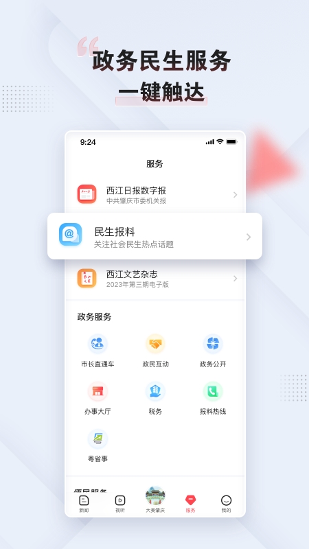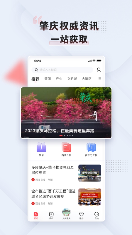 1、下载本站文件安装后打开西江日报app,首页即为各种肇庆市最新的各种政治新闻;