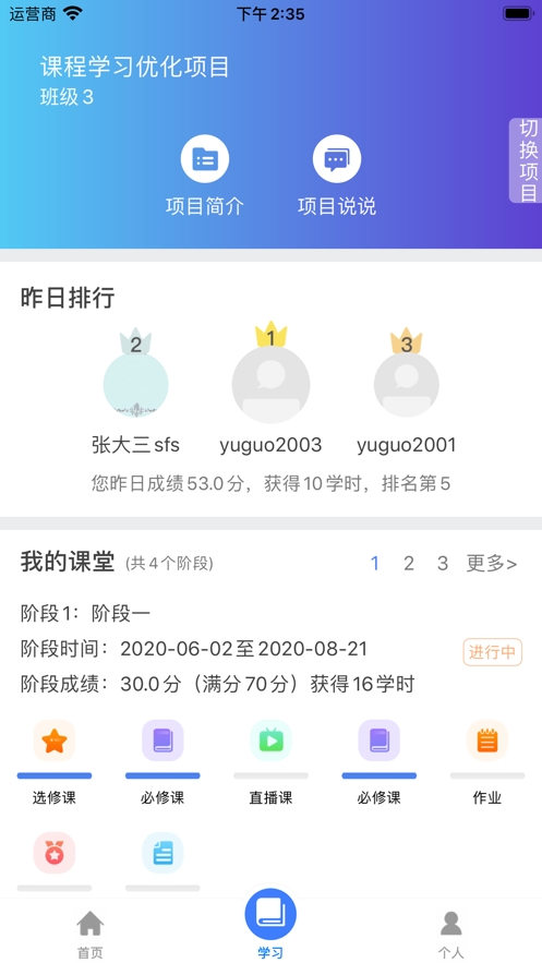 ·项目:可以查看学员参加的培训课程、培训项目
