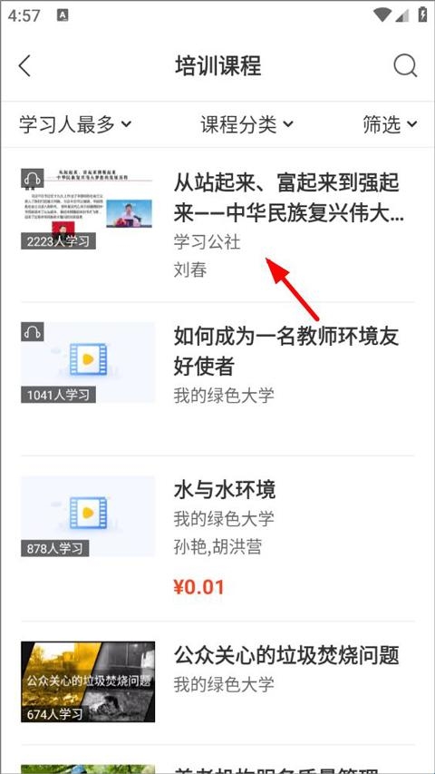 1、打开学习公社云app在个人中心学习或者点击首页的培训课程/项目,选择要学习的课程/项目;