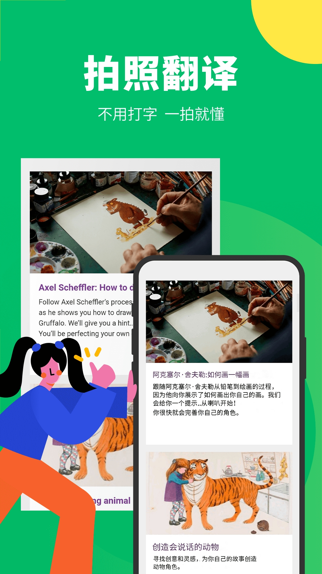 实时对话翻译,随手拍照翻译,让你在国外旅行点菜购物、看欧美大片、听打榜音乐不再茫然。