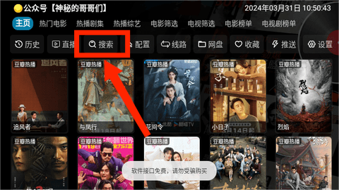 1、启动小黑子影视app,轻点图中所示的搜索功能按钮。