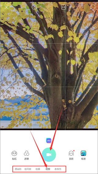 2、在拍摄页面下方选择“视频”拍摄,然后直接点击按钮即可开始拍摄视频;