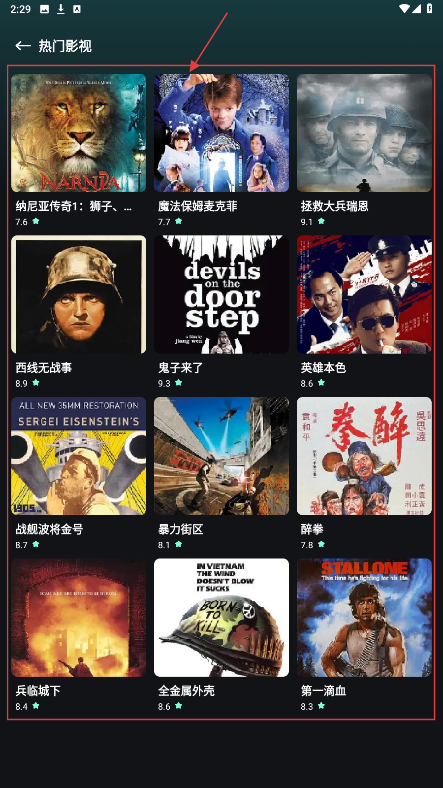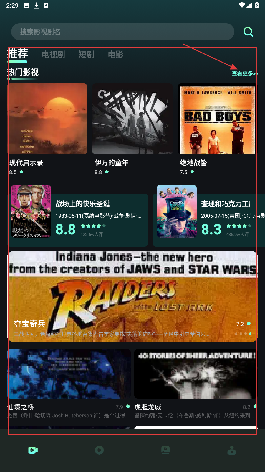 1、进入App,点【查看更多】,浏览热门影视完整列表。