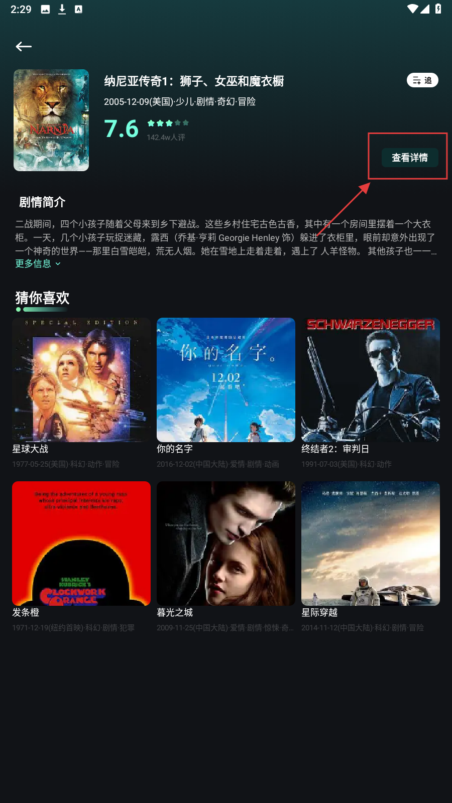 3、在影片简介页,点【查看详情】,看导演、主演等信息。