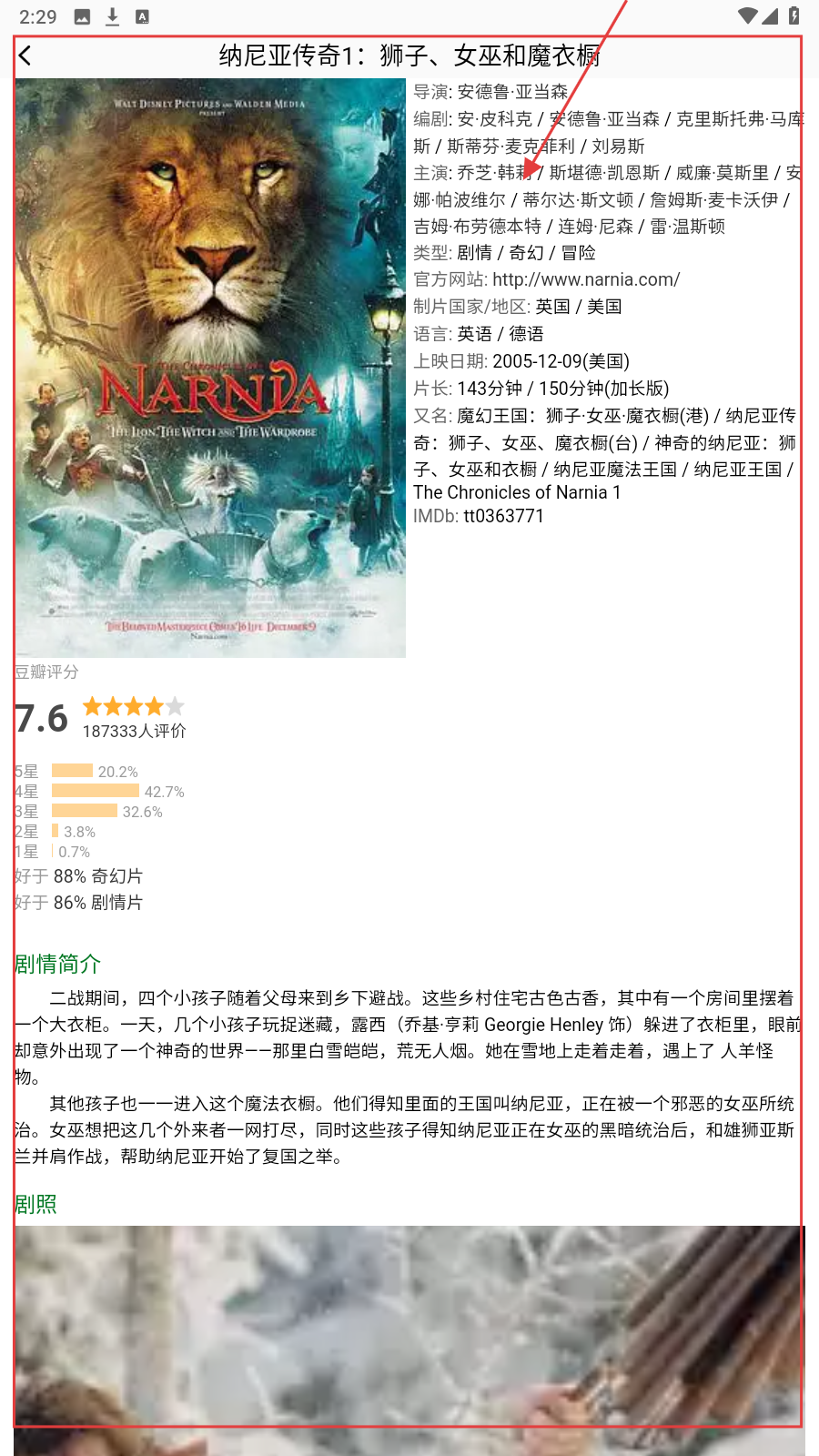 2、在热门影视页,选《纳尼亚传奇1》等影片,进入简介页。