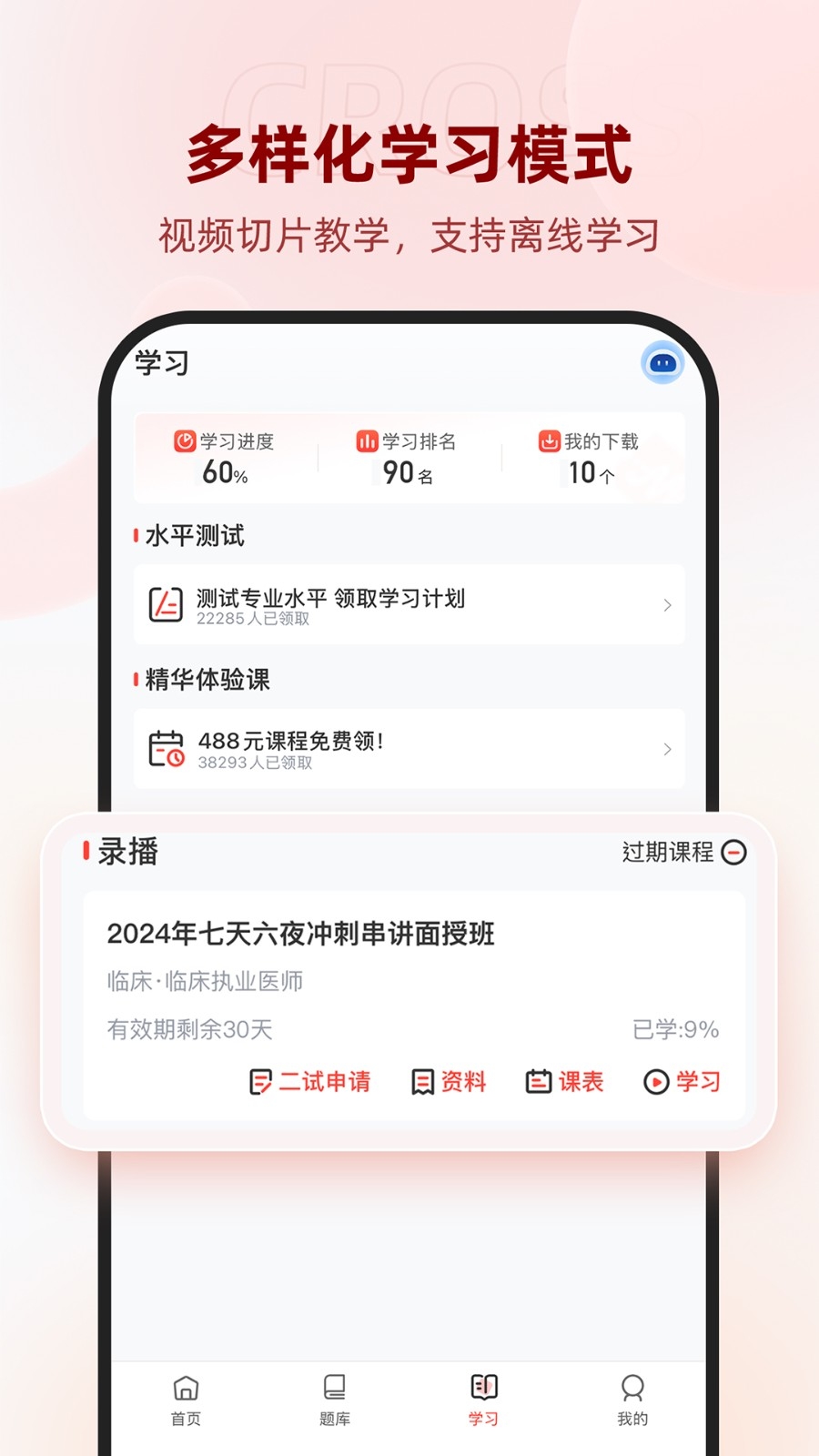 昭昭医考是一款针对于准备医考的用户们准备的学习软件。在软件上具有关于医考的各种学科的学习资源,用户们想要了解和学习的都可以在软件上找的到,而且软件上还配备专业的老师进行视频直播的方式教学,让用户们学习起来更加的高效提高自己的掌握程度,能够顺利的通过考试。
