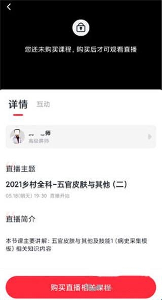 2、在首页选择课程,选择要报名的直播课,点击查看课程详情,点击【购买直播相关课程】。