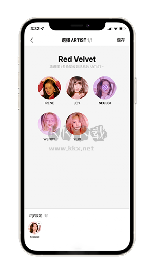 接着,选择你希望接收讯息的艺人。由于我刚才仅购买了一张使用券,因此我只能挑选其中一位团员。倘若你购买更多张使用券,自然就能选择更多团员。
