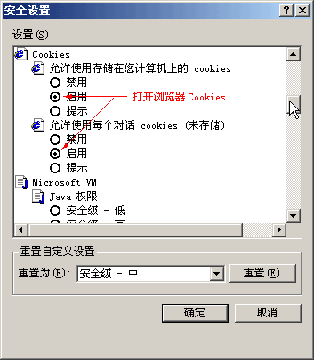 设置 Cookies 选项为“启用”状态,一般默认值是启用