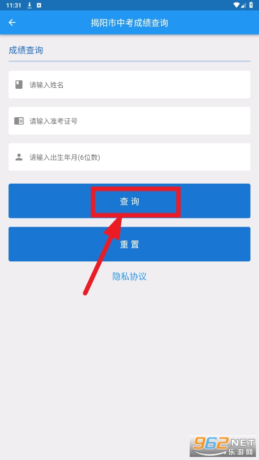 输入姓名,准考证号,出生年月,点击查询