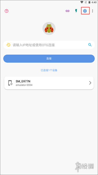 (1)打开甲壳虫ADB助手APP,点击右上角“设置”按钮进入设置界面。