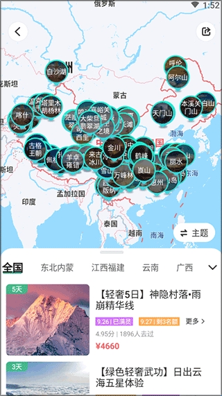 3、点击右上角的旅行地图可以看到全国的旅游打卡点。