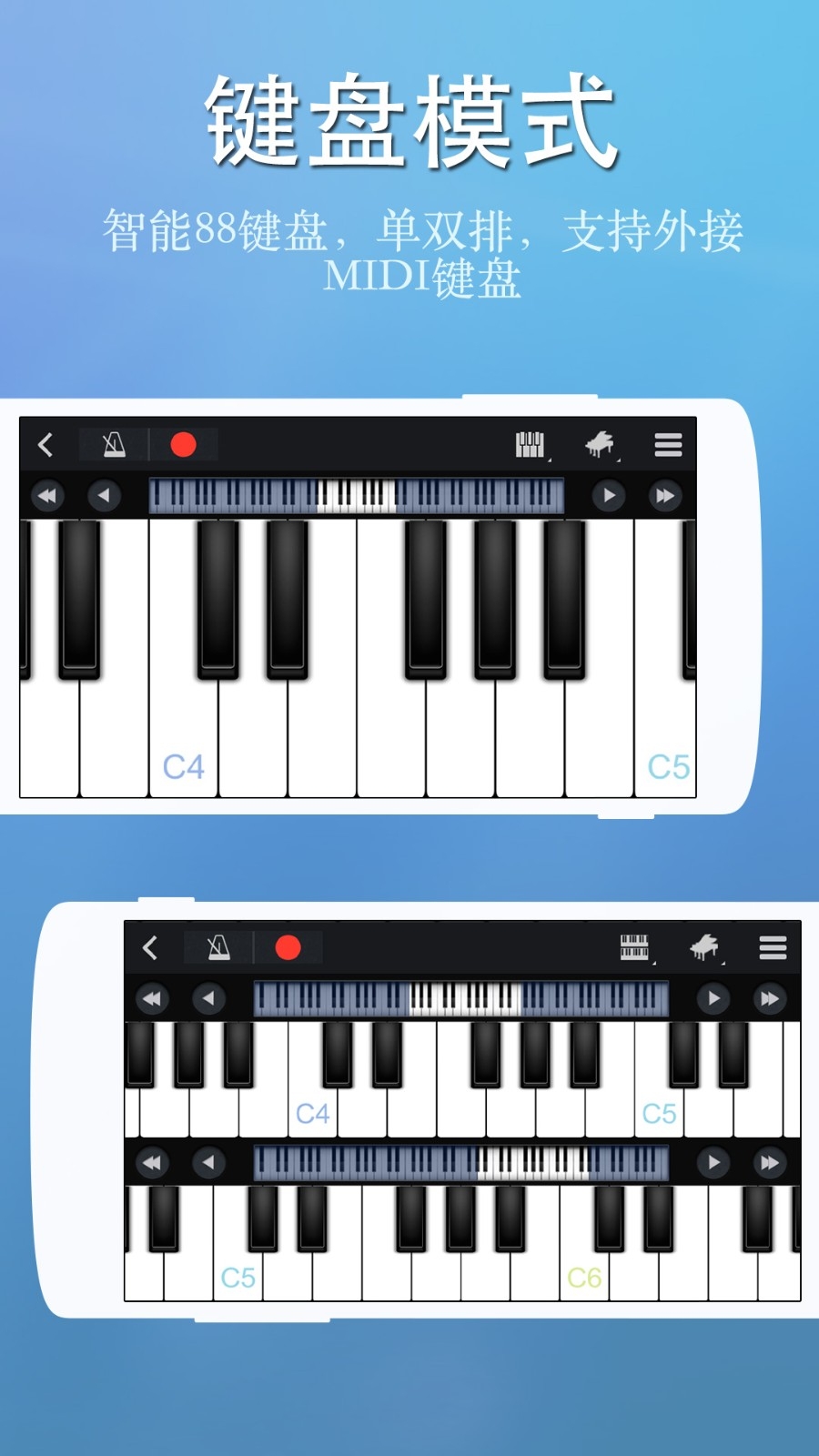完美钢琴官方正版是一款非常专业的手机钢琴软件,软件功能十分丰富,不仅支持钢琴全键盘、多点触控。还支持5种架子鼓音效和预置11种节奏Pattern,并且使用的是真实的钢琴声音,广大钢琴爱好者可以在手机上流畅的弹出优美的钢琴曲。