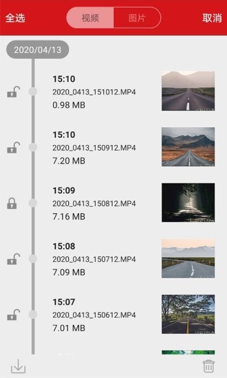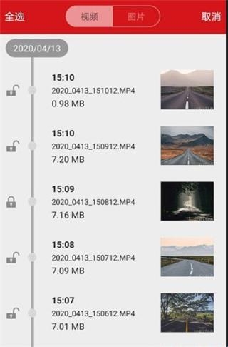 1、所有的行车片断都有日期、时间显示,方便大家快速寻找到。