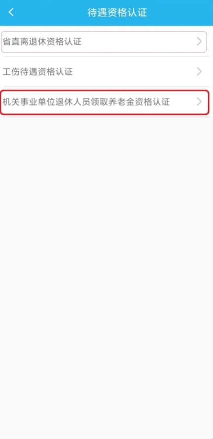 2、选择“城乡居民待遇领取资格认证”或“职工养老离退休资格认证”