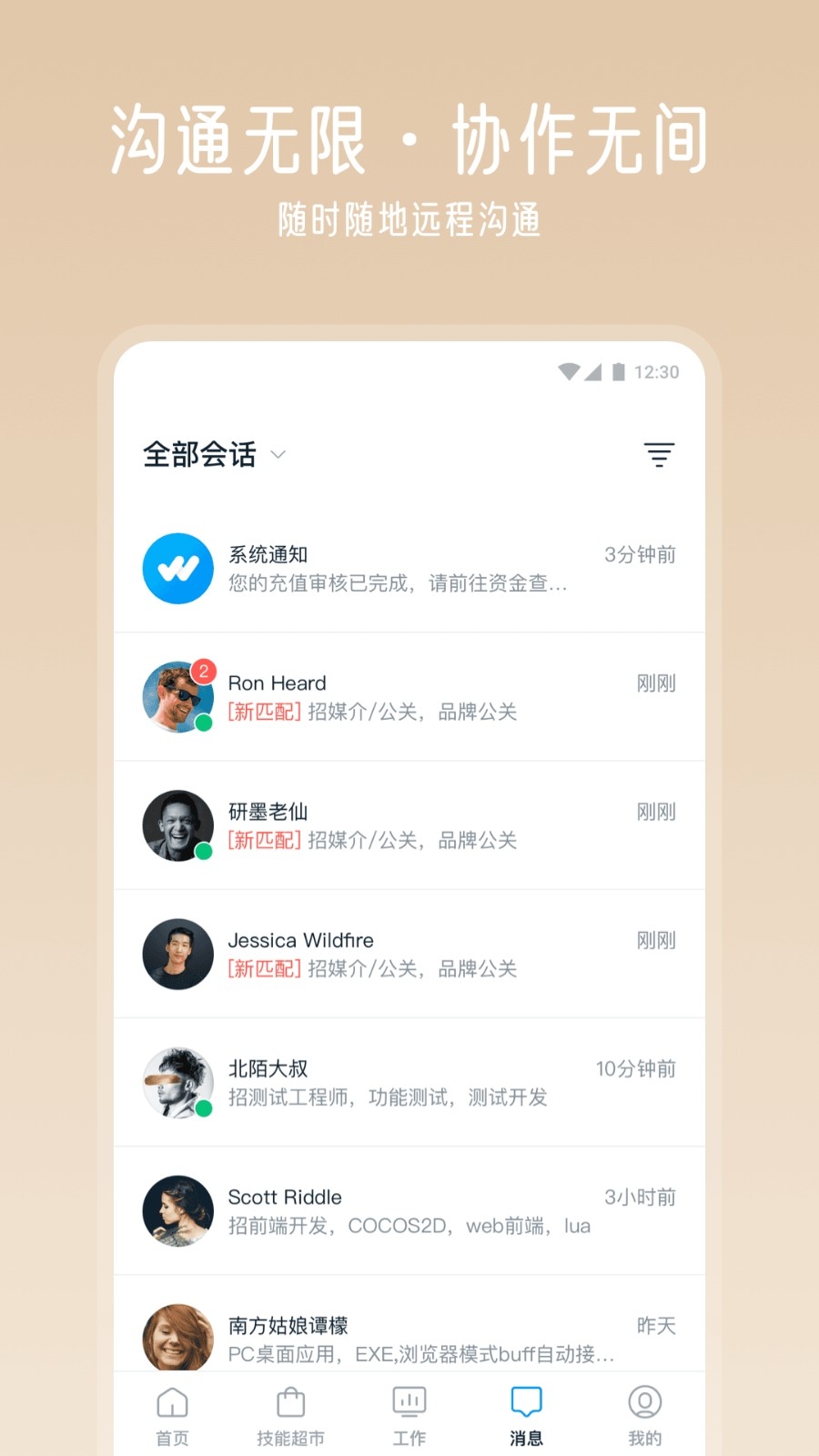 雇主和人才可以在云队友免费快捷的发布雇佣需求和求职信息,通过平台的智能匹配算法,进行双向推荐,平均3个工作日即可开始工作,拒绝无效沟通,提高合作效率;