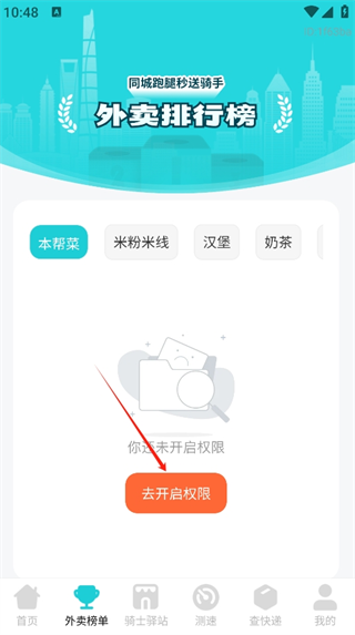 3、点击进入外卖排行榜,此时需大家开启授权。