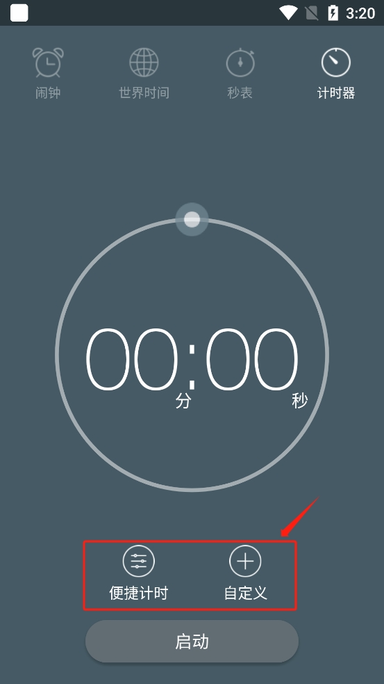 1、用户进入“计时器”界面,在这里可以选择“便携计时”或者是“自定义”。