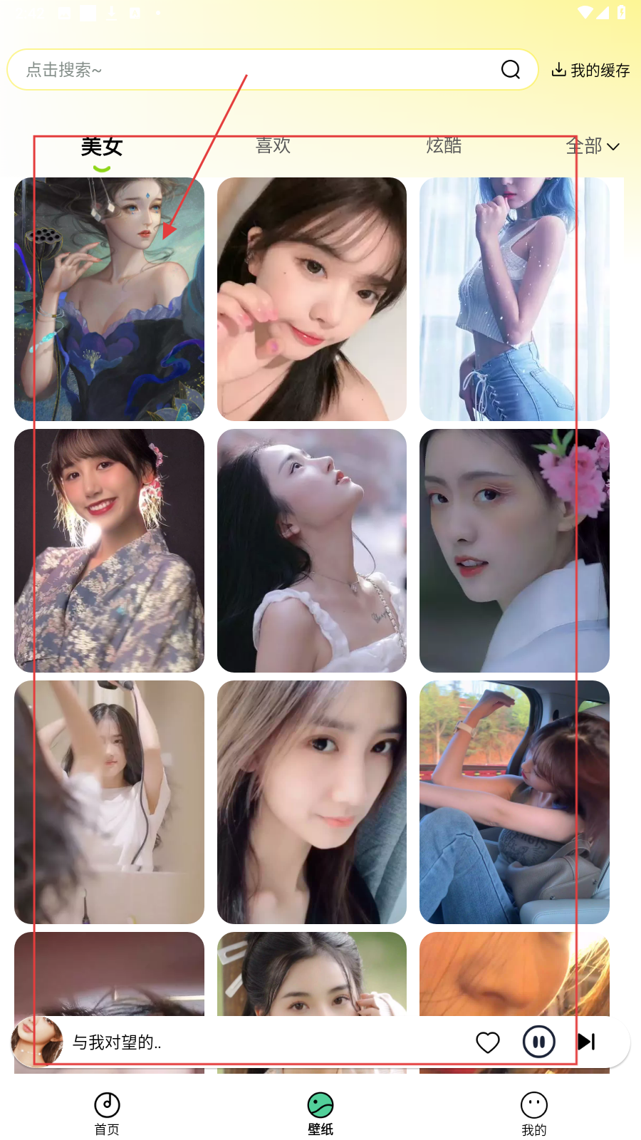 4、切换【壁纸】页,选【美女】分类,点击心仪壁纸查看或使用。
