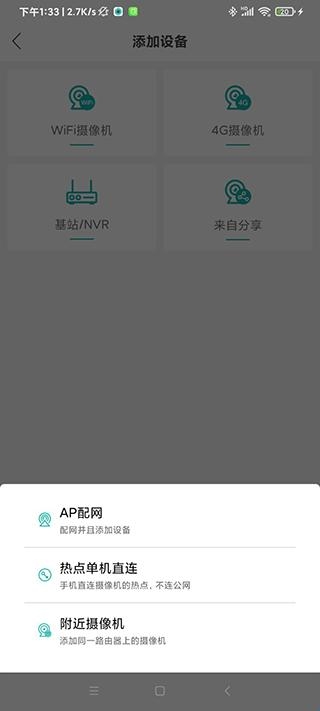 2、点击“+”,选择“添加我的4G/5G摄像机”,扫描设备机身标签上的二维码;