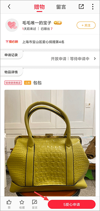 2、点击物品进入领取界面,使用相应的爱心即可申领物品。