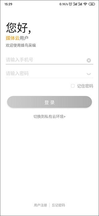 1、首先打开蜂鸟采编租户版app,会看到两个登入方式分别是私有云用户和媒体云用户: