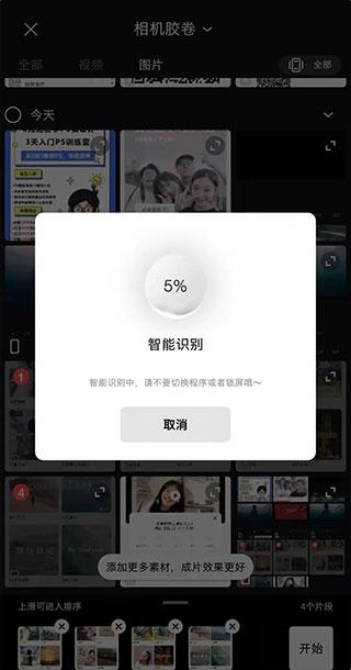 一键成片功能可以智能识别你的视频、照片主题,为你匹配合适的视频特效;