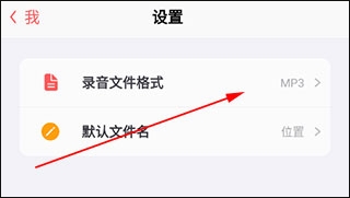 3、进入到随声鹿设置中,点击【录音文件格式】。