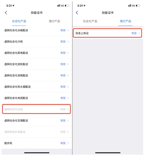 3、在技能证书页面查看拥有的上岗证及证书状态;