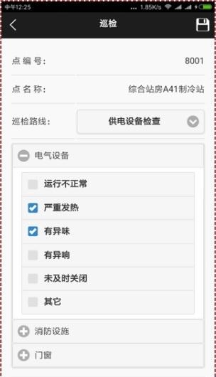 5、每个巡检点会有不同的巡检项目,请仔细巡视检查、填写信息、拍摄照片,最后点击【确定】按钮,将巡检记录上报到巡检卫士云平台。