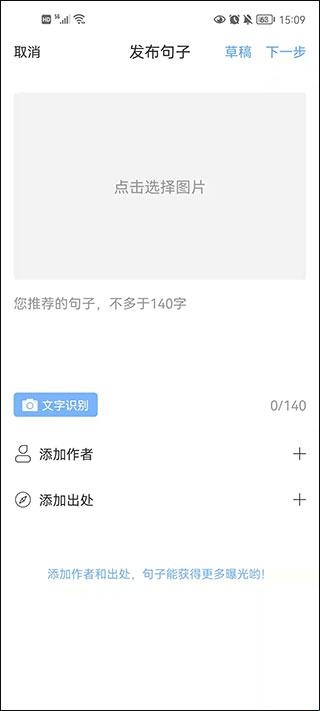 2、点击发布,用户可以在这里进行一个句子的创作,并且支持添加图片;