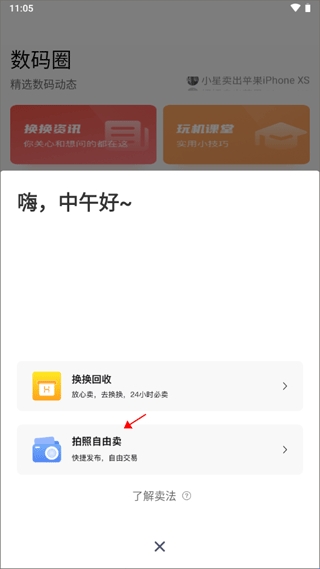 2、页面弹出了两个选项,选择第二个“拍照自由卖”。