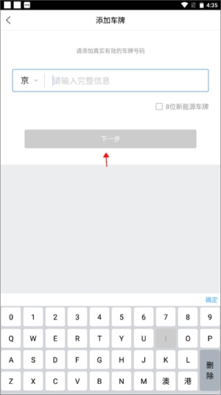 3、输入车辆的车牌号,并进入下一步。