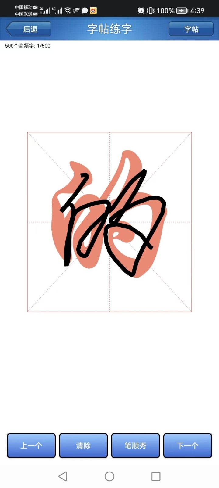 1、选择app提供的字帖内容,就能在这里进行汉字的笔顺练习;