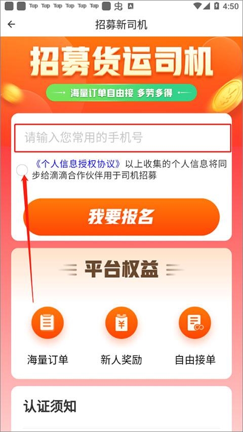 4、符合要求的话即可输入自己的手机号,勾选条款,点击【我要报名】即可加盟。