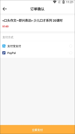 4、在同意之后就能进入结算界面了,在这里选择好支付方式后,点击“立即支付”即可购买课程。