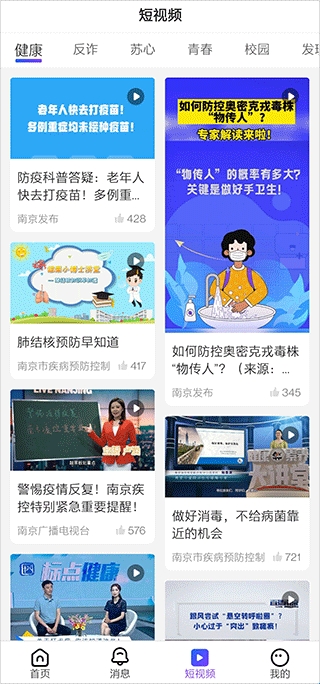 3、在短视频模块还可以根据健康、反诈等内容进行选择;