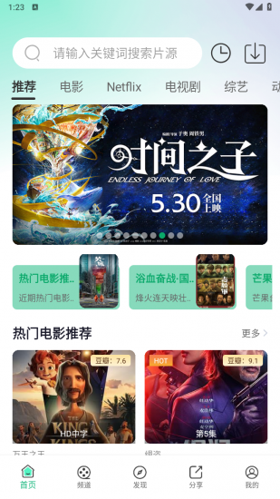 4、借助搜索功能轻松找到想观看的影片,推荐版块也可找到近几天热门的影视剧集。