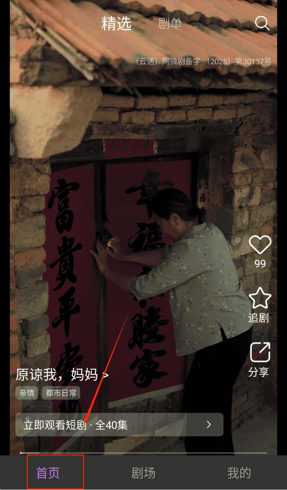 1、打开APP后浏览首页推荐的短剧列表或通过分类筛选,找到感兴趣的剧集点击进入详情页面查看剧情简介和用户评分。