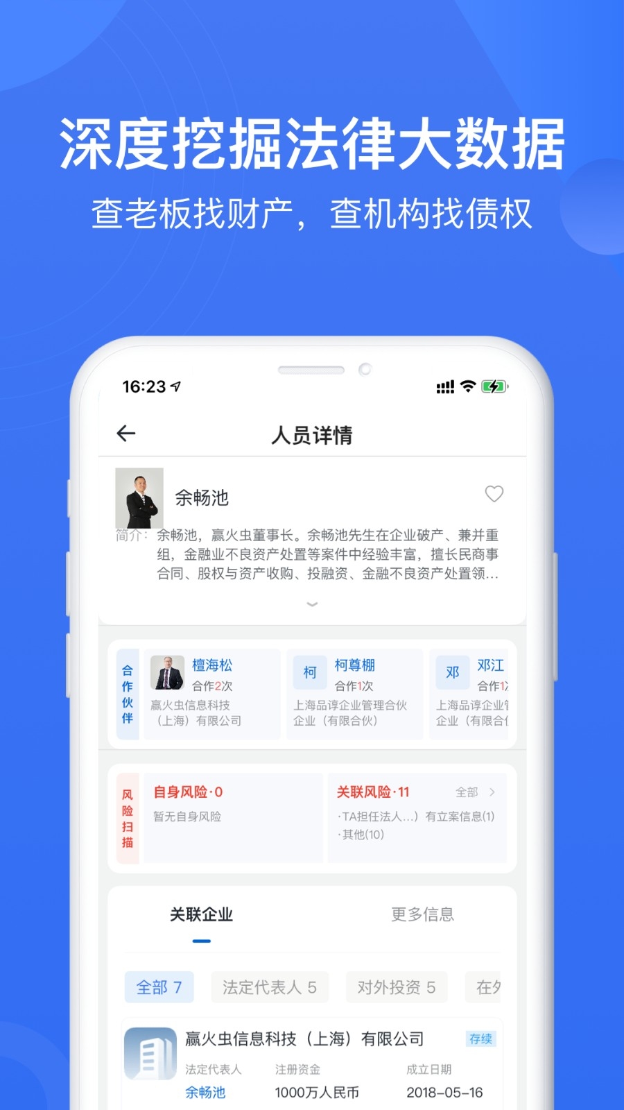 10年法律服务行业经验,深度挖掘海量真实数据,涵盖工商、司法、招标等百余项数据维度,自主研发飞天、探月、悟空、鹰巢、天宫五大科技系统,独有算法,自建模型,全面满足用户对公司、律师、案例、老板等信息的查询&报告输出需求。