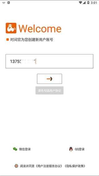1、打开软件后直接输入电话号码后点击下一步箭头