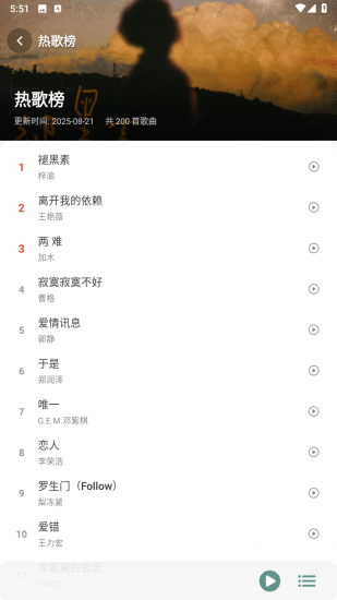 4、推荐的热门歌曲随便听,热门歌单让你找歌更方便,下载后的歌曲可以直接导入到其他的音乐播放器中
