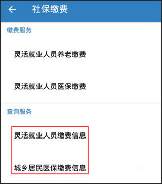 2、根据自己的实际缴费情况选择【灵活就业人员缴费信息】或者【城乡居民医保缴费信息】。