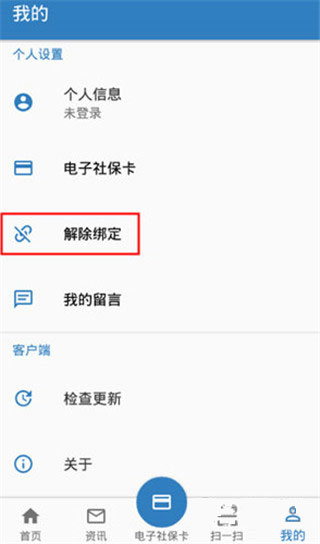 1、进入徐州人社养老认证app,选择【我的】页面,点击【解除绑定】。