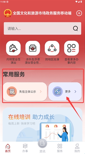 3、通过首页常用服务区的更多选项,可查看失信公示等扩展功能。