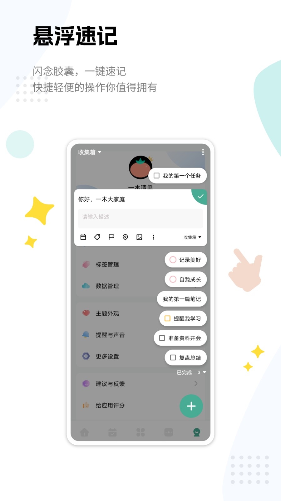 一木清单是一款简约而不简单的智能待办清单,可以帮助您随时随地快速记录待办事项、出行计划、生活灵感和重要笔记,轻松规划每一天。