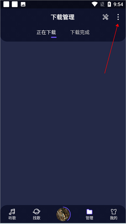 用户进入fly音乐【管理】页面中,点击右上角的扩展菜单图标(下图红色箭头所指)