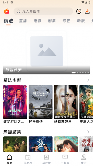 1、搜索框输入名称快速找到想看的影视剧,点击进入播放界面,并可选择将剧集缓存到本地,方便离线观看。